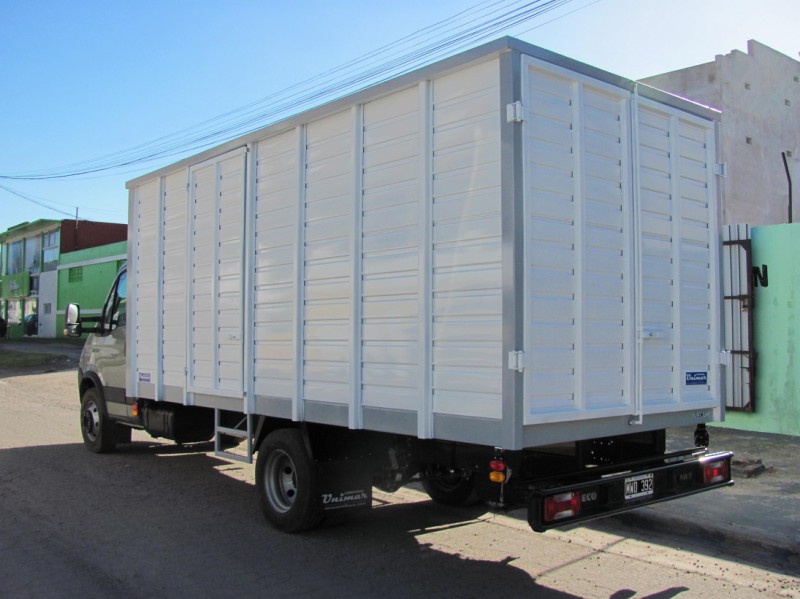 Con materiales de 1ra calidad y espesores requeridos. La standard es con puerta libro trasera y una puerta lateral, piso de chapa con refuerzos entre palomas y de 3.2 mm de espesor, (opción «semilla melón»).